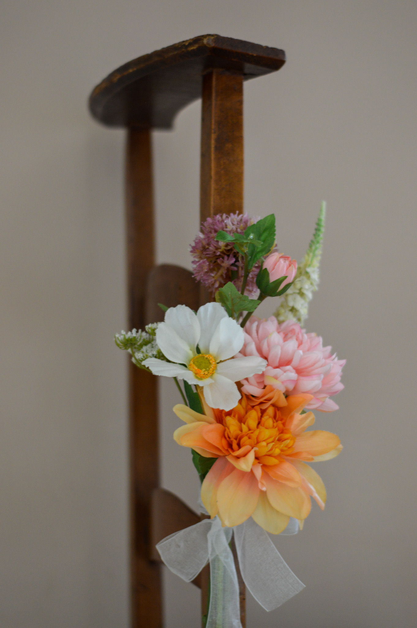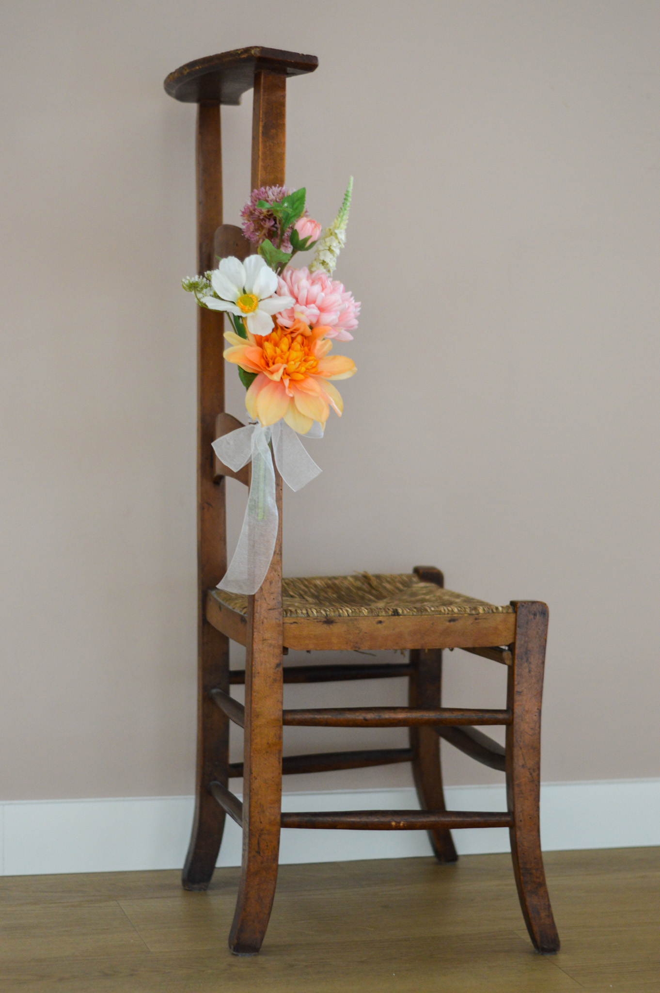 Elk bloemstukje wordt met de hand opgemaakt van hoogwaardige zijden bloemen waarvan sommige met een real touch afwerking. Daardoor ogen de bloemen levensecht, maar blijven ze de hele dag perfect – zonder water of zorgen. De stevige lintbevestiging zorgt ervoor dat je de decoratie eenvoudig kunt vastmaken aan de stoelen, zonder te verschuiven of te draaien.